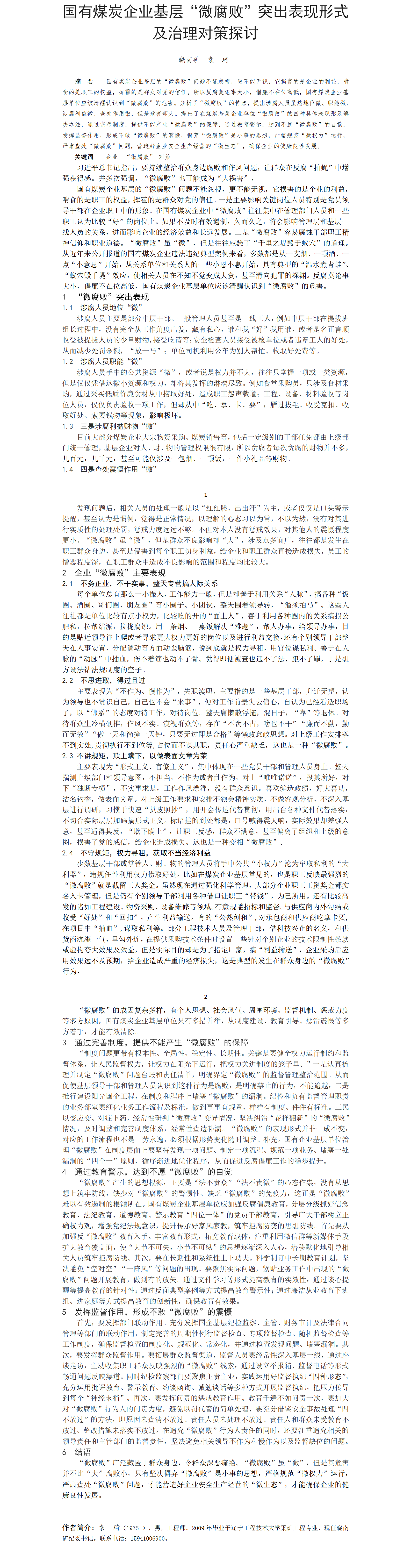 第58屆等級(jí)獎(jiǎng)?wù)撐?--國有煤炭企業(yè)基層“微腐敗”突出表現(xiàn)形式及治理對(duì)策探討