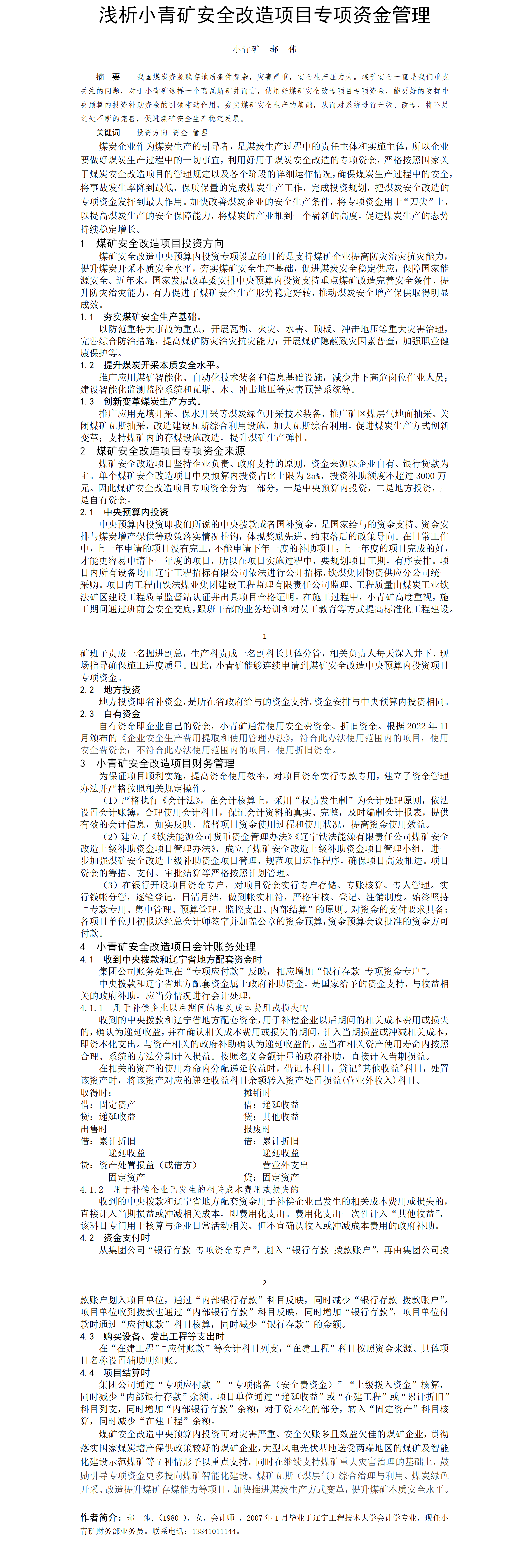 第58屆等級獎?wù)撐?--淺析小青煤礦安全改造項(xiàng)目專項(xiàng)資金管理