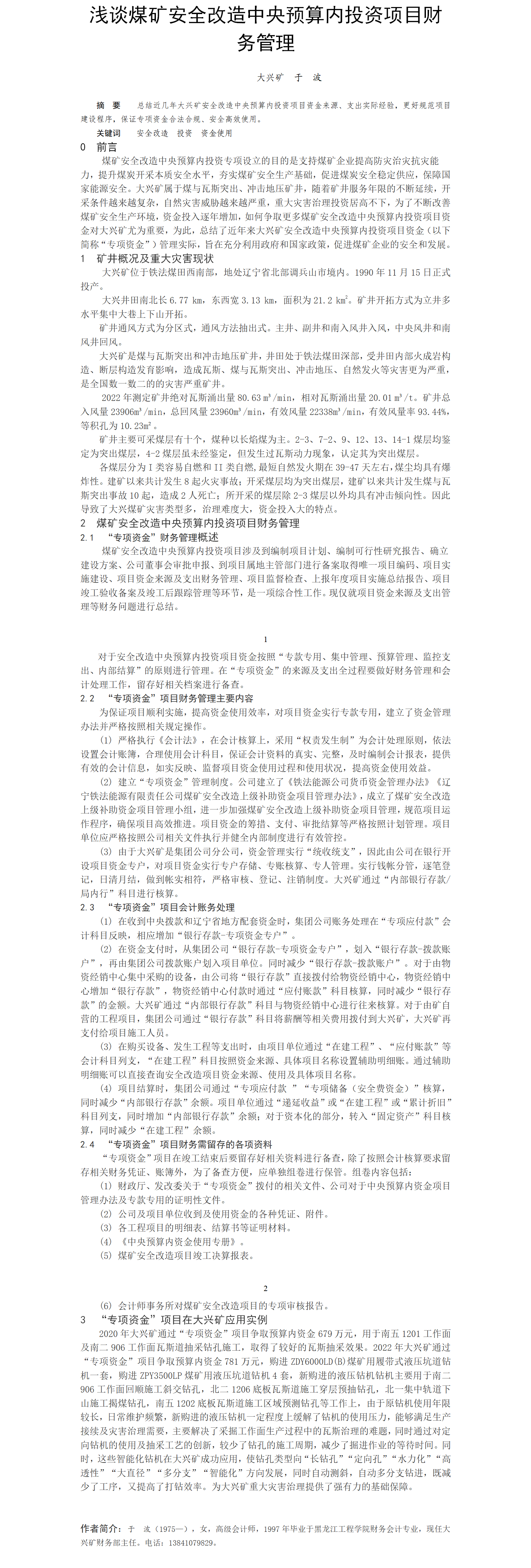第58屆等級獎?wù)撐?--淺談煤礦安全改造中央預(yù)算內(nèi)投資項(xiàng)目財(cái)務(wù)管理