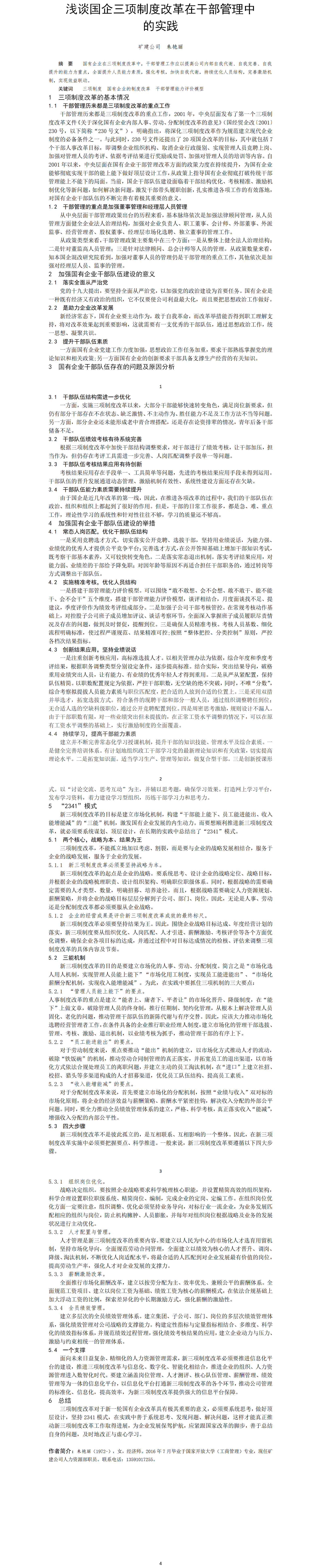 第58屆等級獎論文---淺談國企三項制度改革在干部管理中的實踐