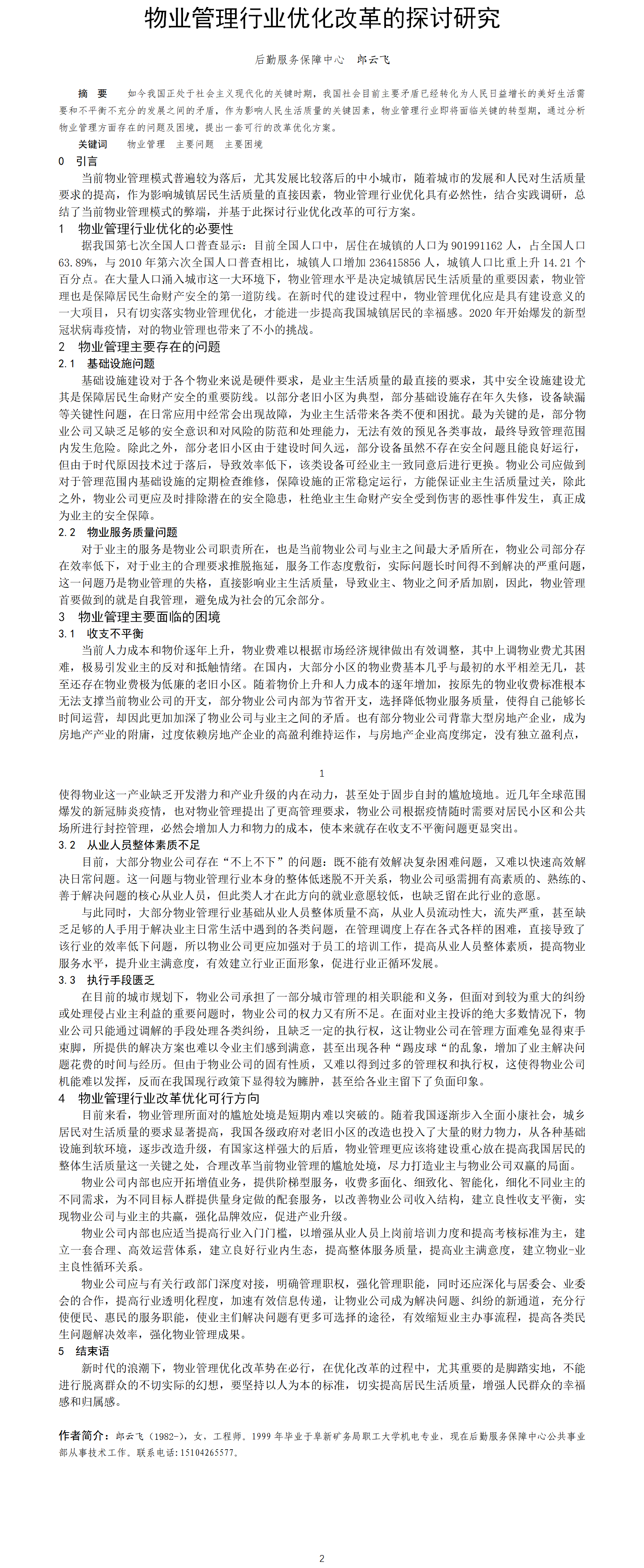第58屆等級獎?wù)撐?--物業(yè)管理行業(yè)優(yōu)化改革的研究