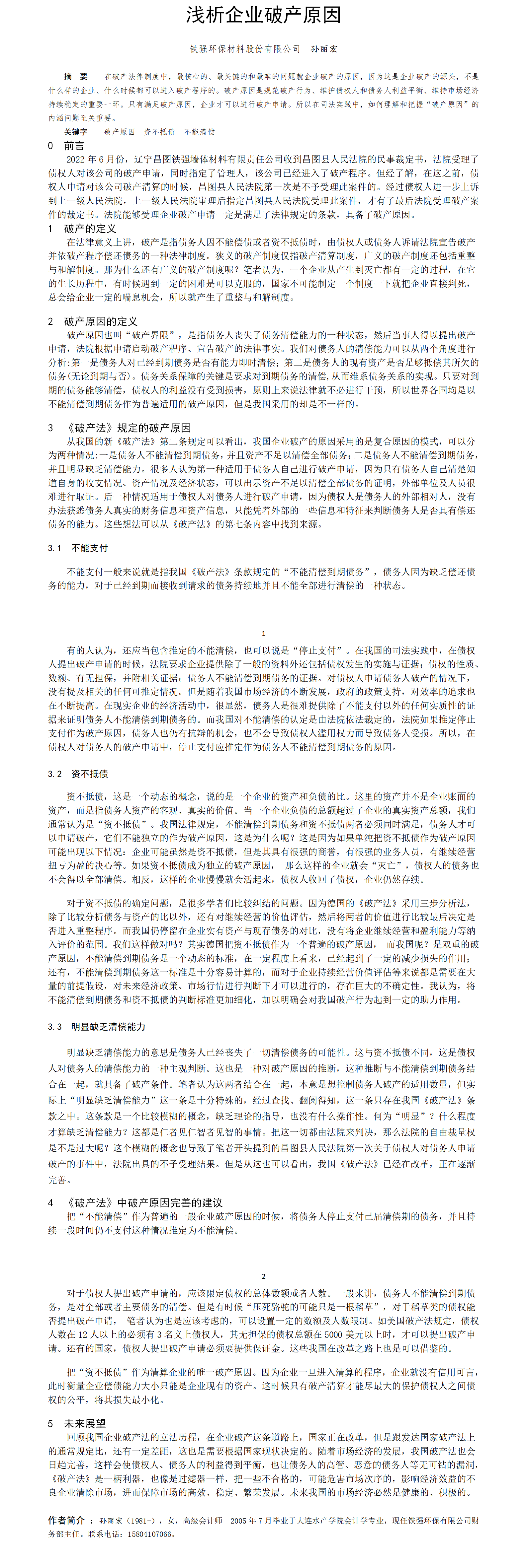 第58屆等級(jí)獎(jiǎng)?wù)撐?--淺析企業(yè)破產(chǎn)原因