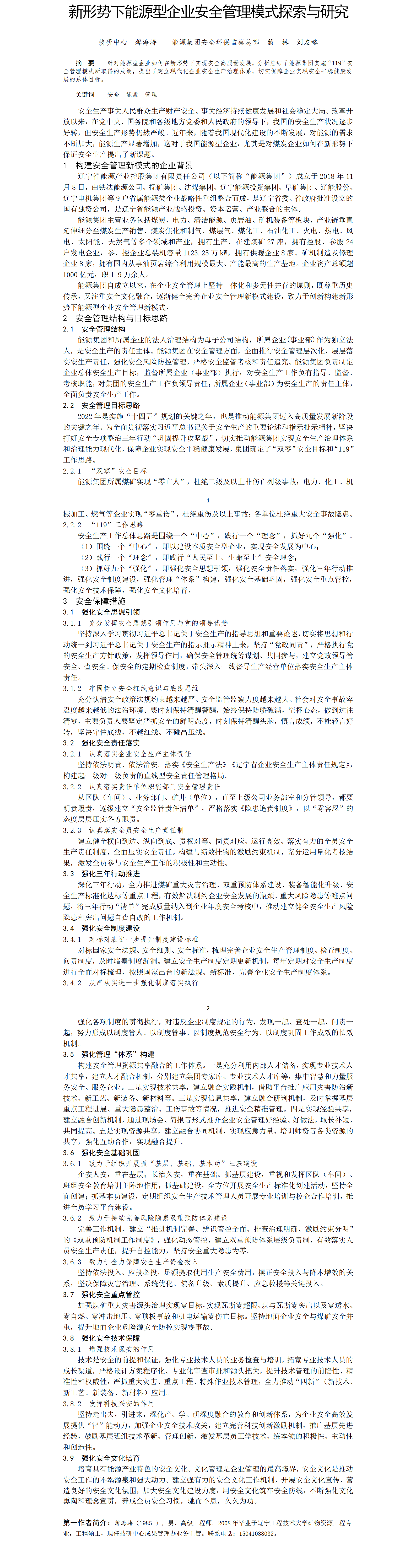 第58屆等級獎論文---新形勢下能源型企業(yè)安全管理模式探索與研究