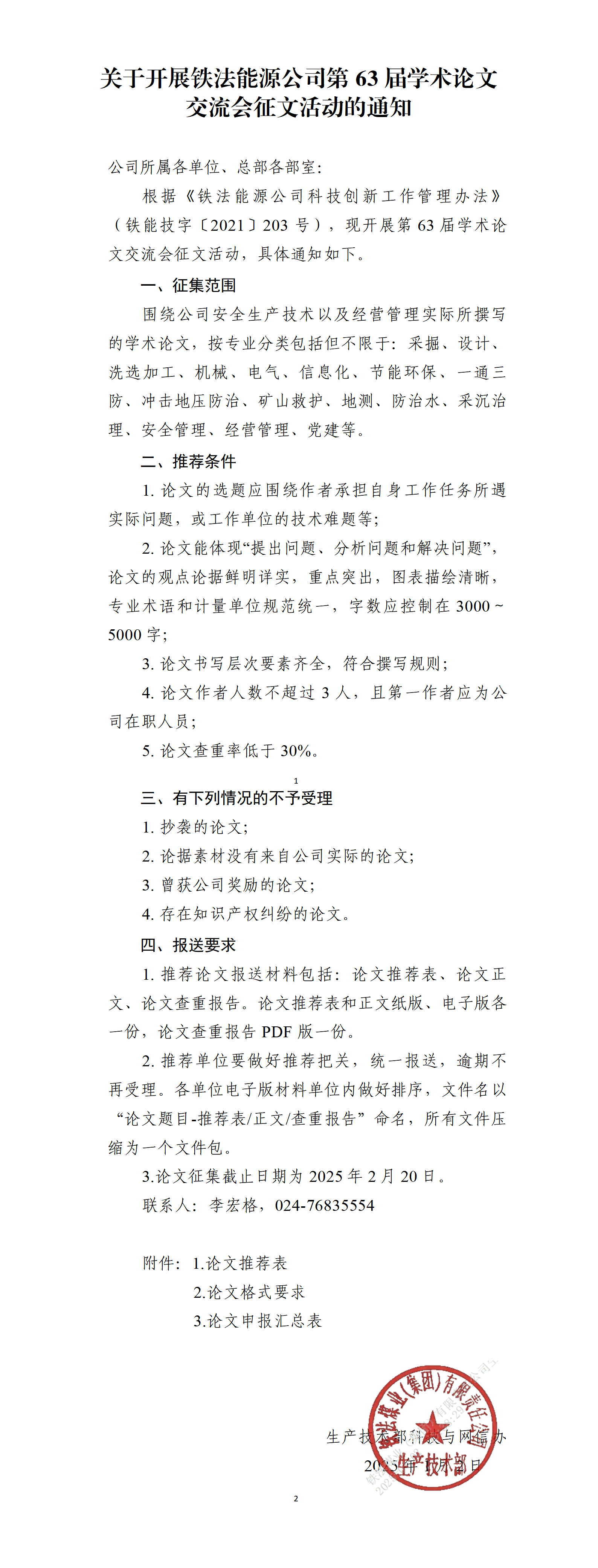 關(guān)于開展鐵法能源公司第63屆學(xué)術(shù)論文交流會(huì)征文活動(dòng)的通知