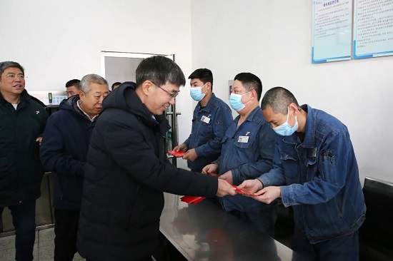 來到熱電廠主控室白班班組,田茂君為每名職工送上慰問金,并詳細了解發(fā)電供熱系統(tǒng)運行、春節(jié)供熱保障等工作情況,向堅守在崗位上的干部職工致以崇高敬意和新春的祝福,祝福大家新春平安健康、幸福吉祥。