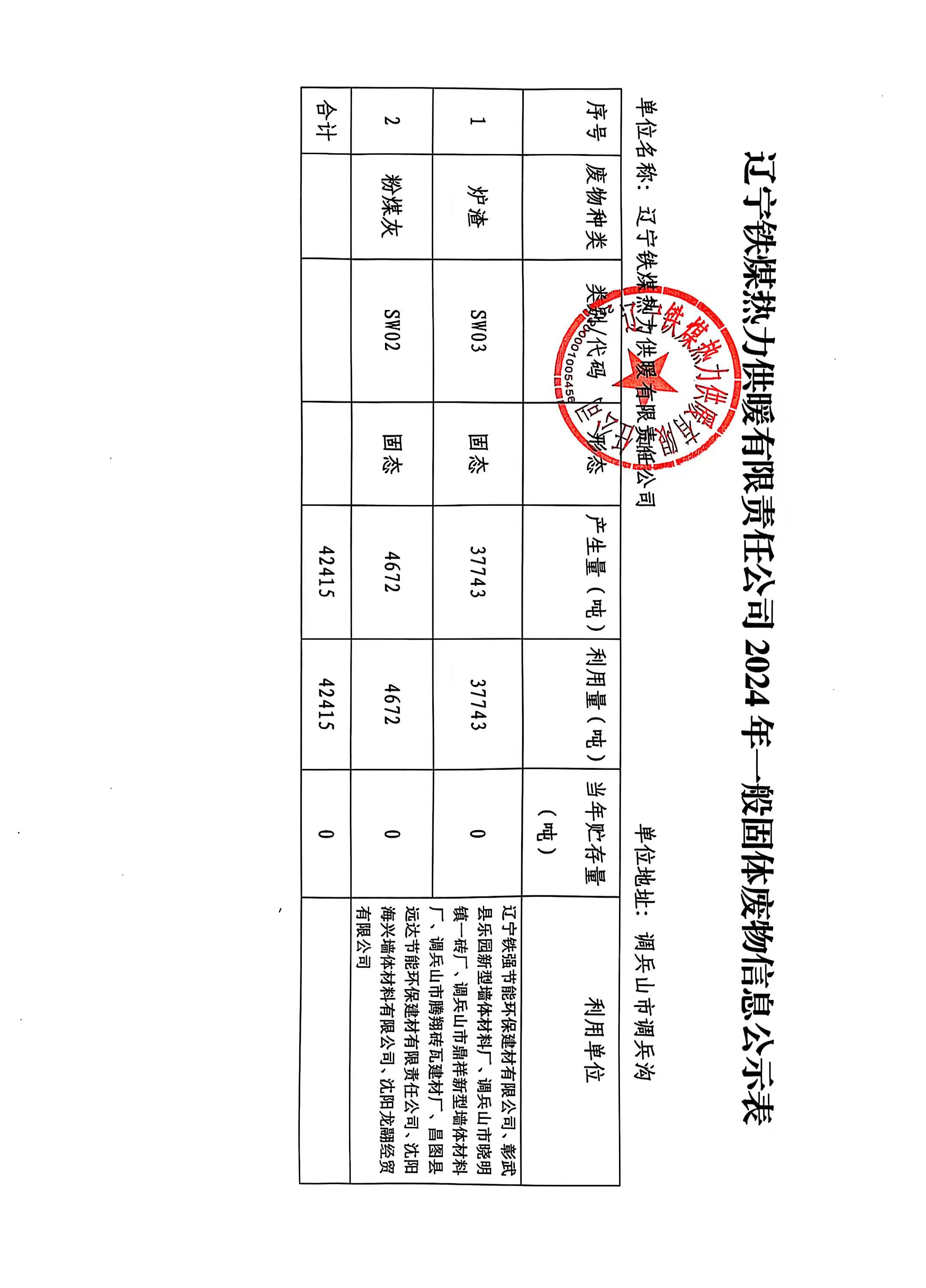 熱力供暖公司2024年度固體廢物污染環(huán)境防治信息