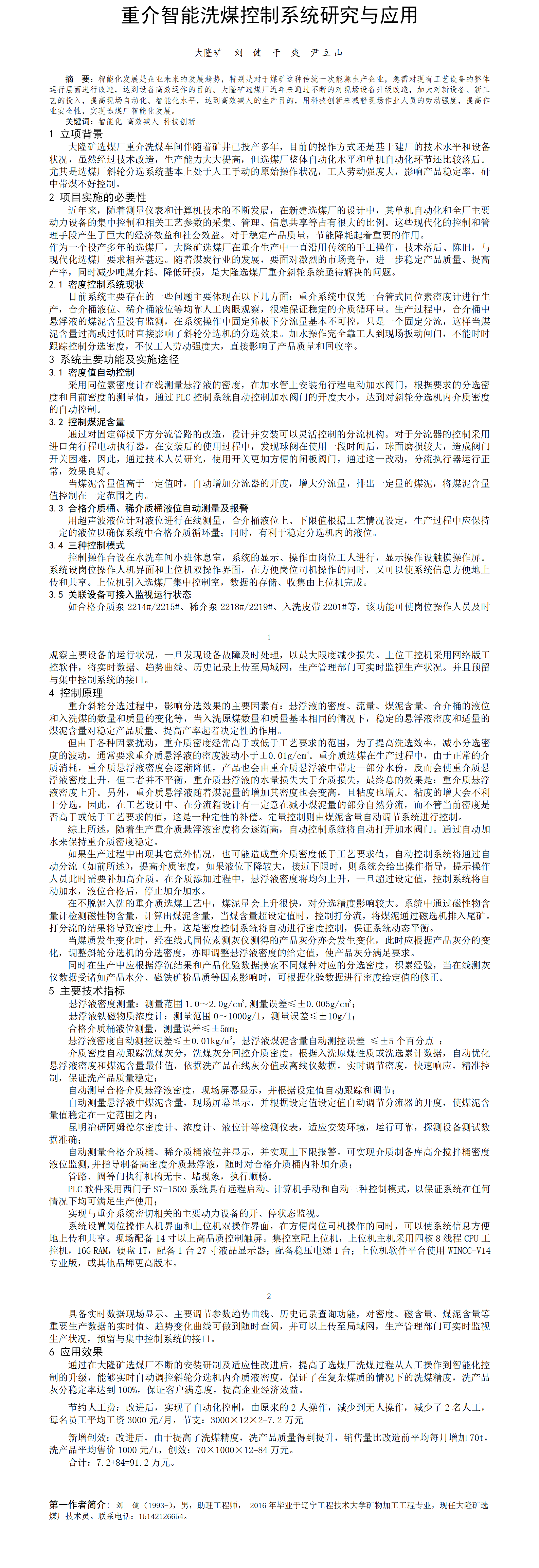 第59屆等級獎?wù)撐?--重介智能洗煤控制系統(tǒng)研究與應(yīng)用