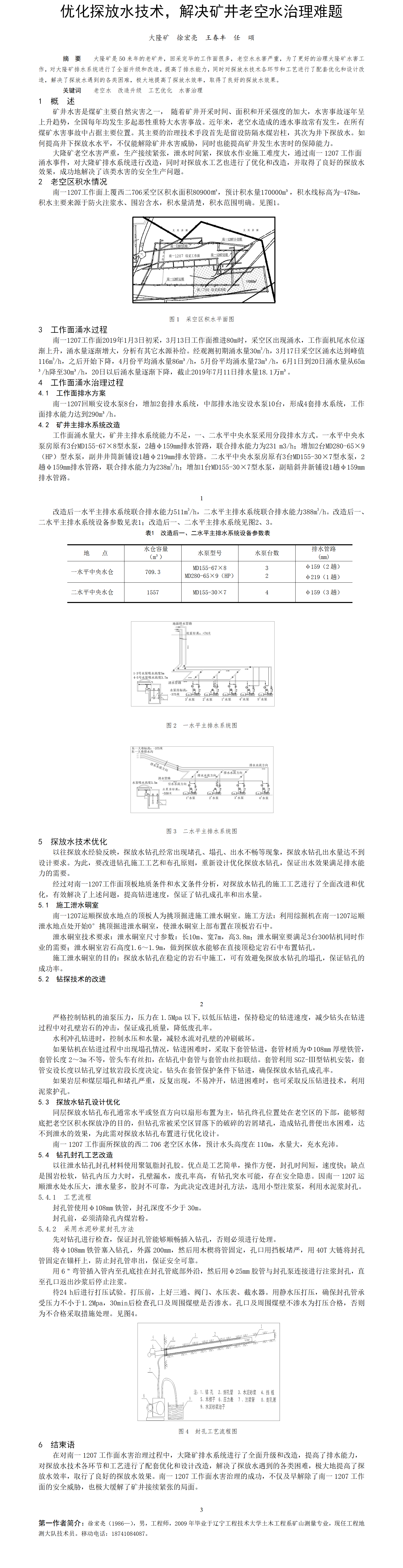 第59屆等級(jí)獎(jiǎng)?wù)撐?--優(yōu)化探放水技術(shù),解決礦井老空水治理難題