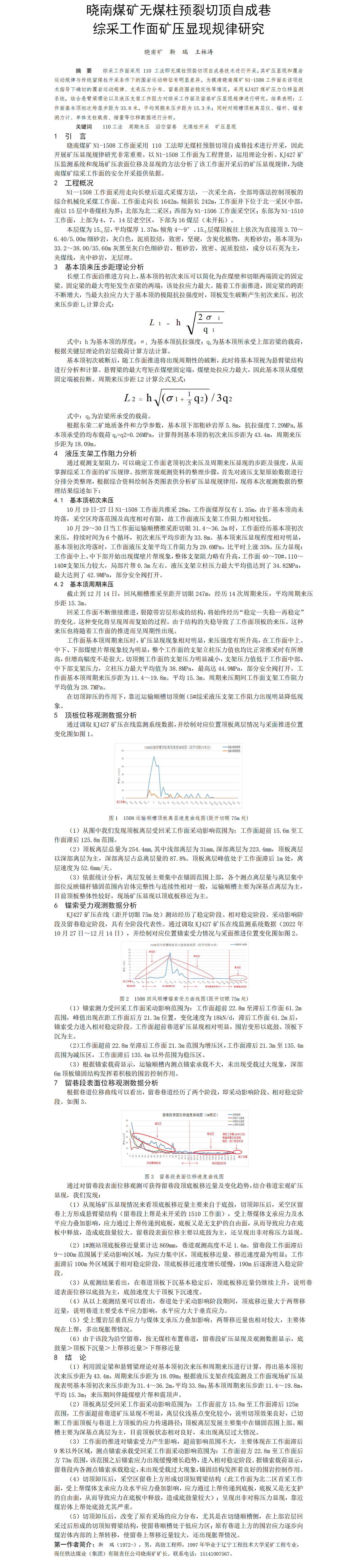 第59屆等級獎論文---曉南煤礦無煤柱預裂切頂自成巷綜采工作面礦壓顯現(xiàn)規(guī)律研究