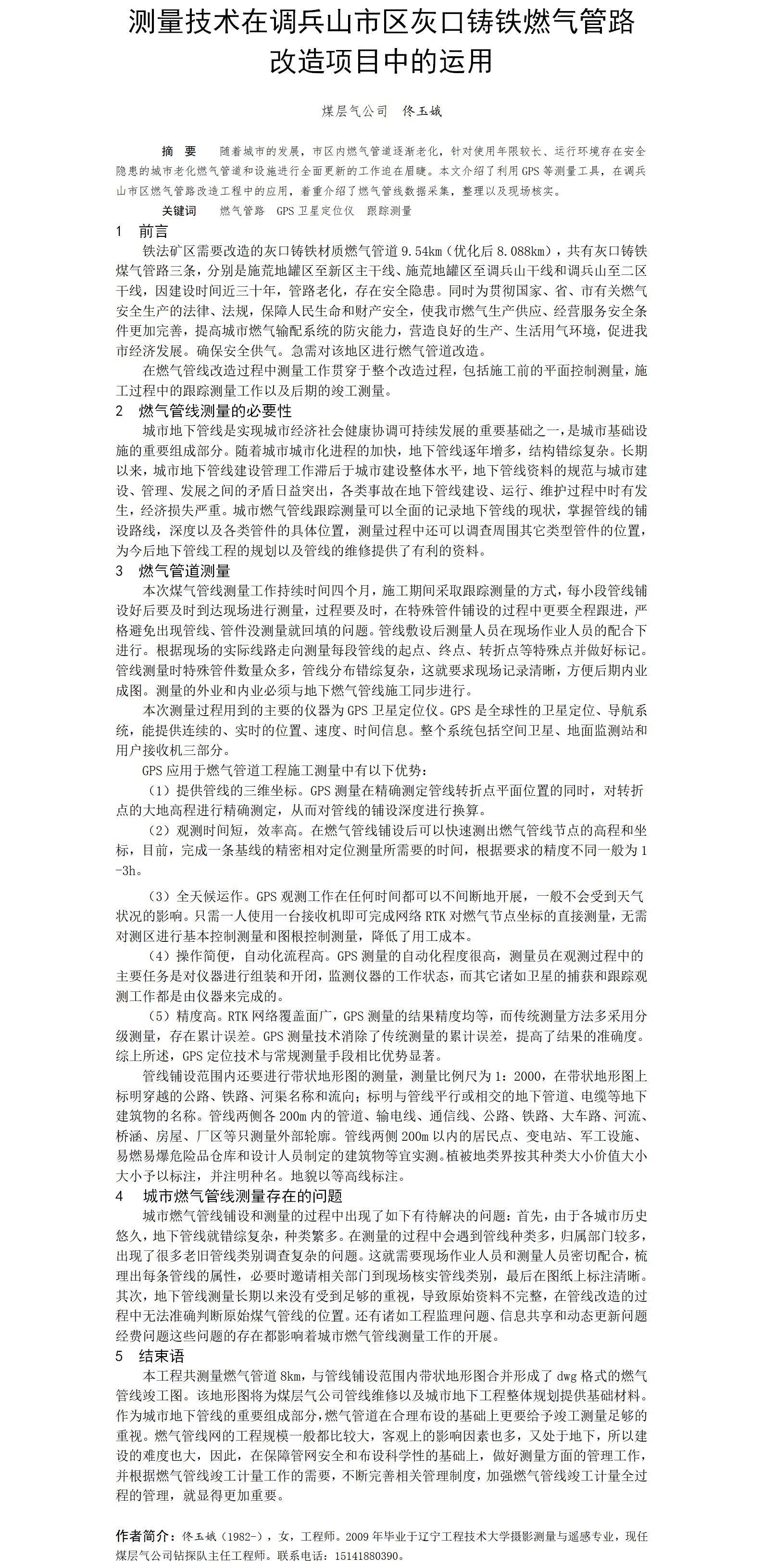 第59屆等級(jí)獎(jiǎng)?wù)撐?--測(cè)量技術(shù)在調(diào)兵山市區(qū)灰口鑄鐵燃?xì)夤苈犯脑祉?xiàng)目中的運(yùn)用