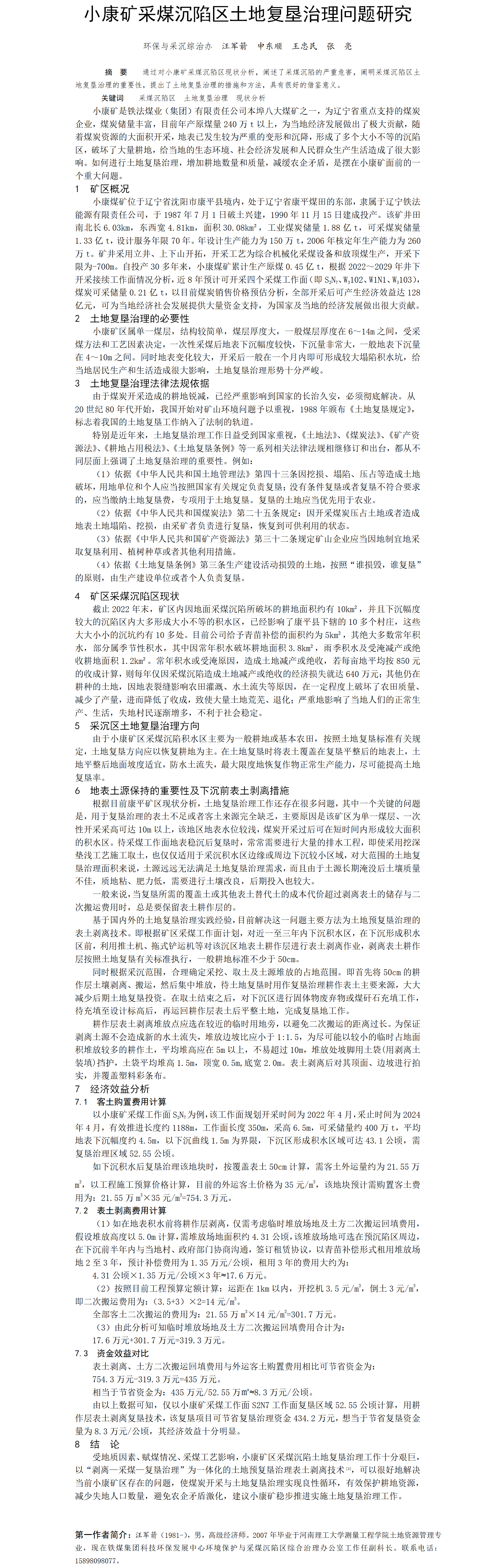 第59屆等級獎論文---小康礦采煤沉陷區(qū)土地復墾治理問題研究