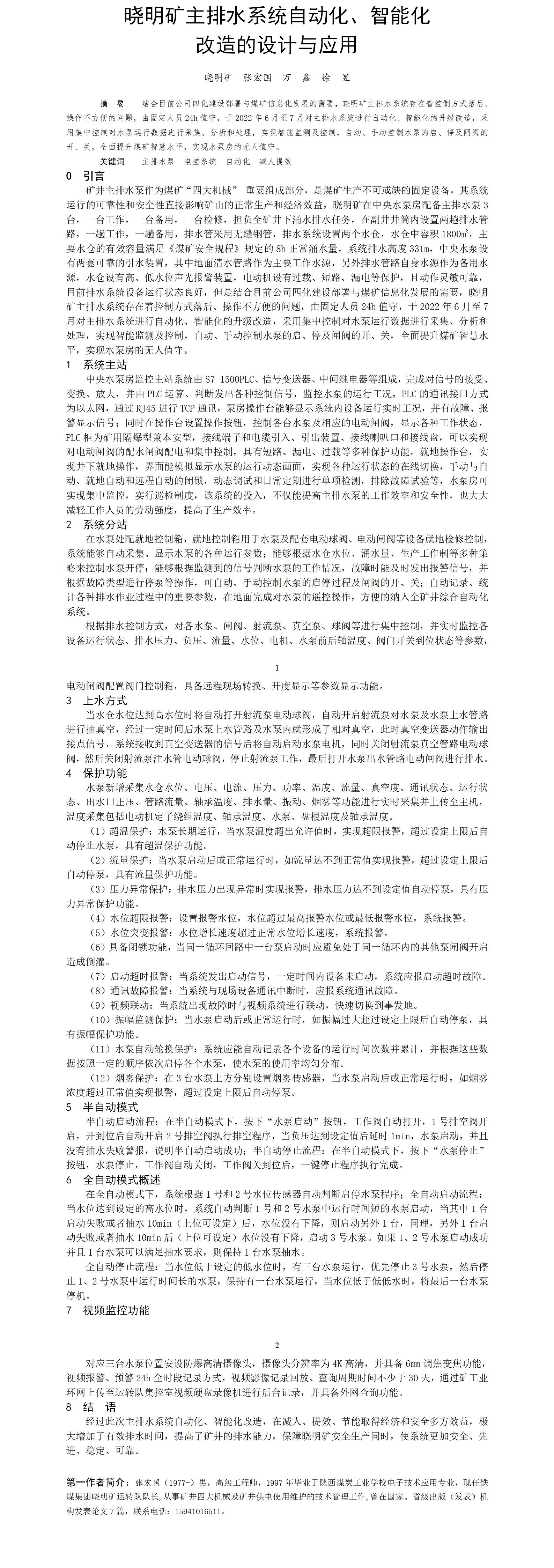 第60屆等級獎論文---曉明礦主排水系統自動化、智能化改造的設計與應用