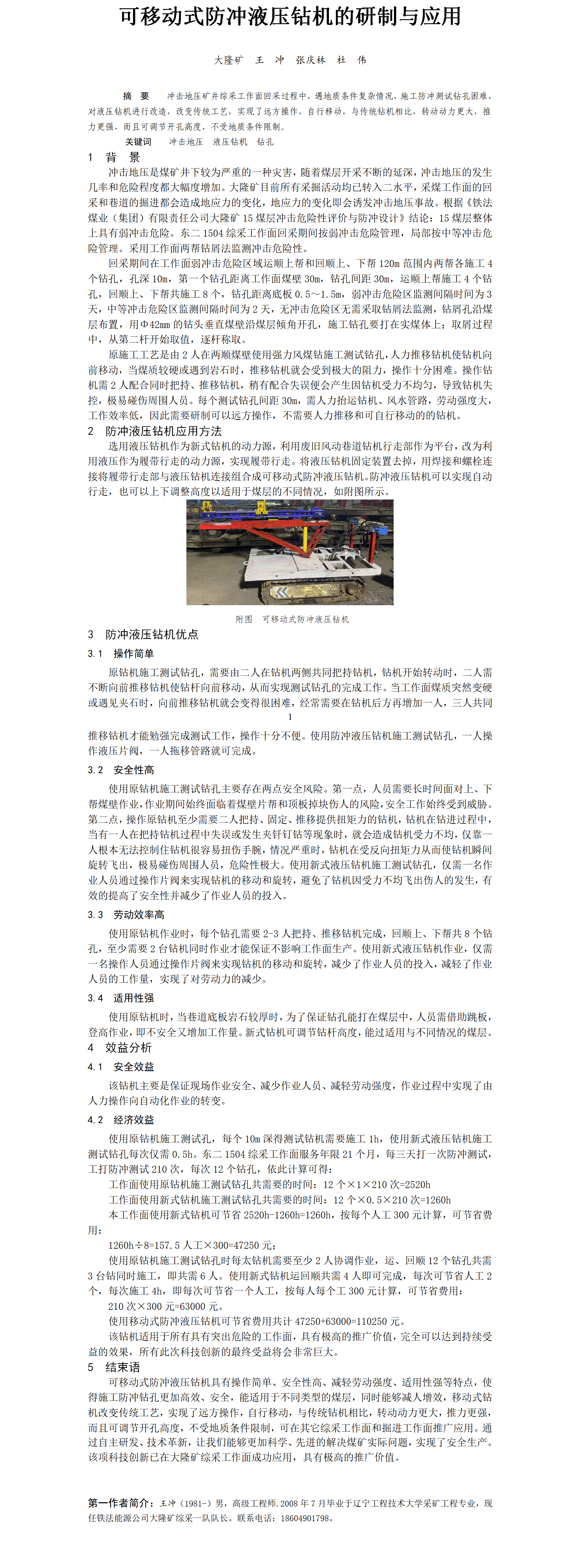 第60屆等級(jí)獎(jiǎng)?wù)撐?--可移動(dòng)式防沖液壓鉆機(jī)的研制與應(yīng)用