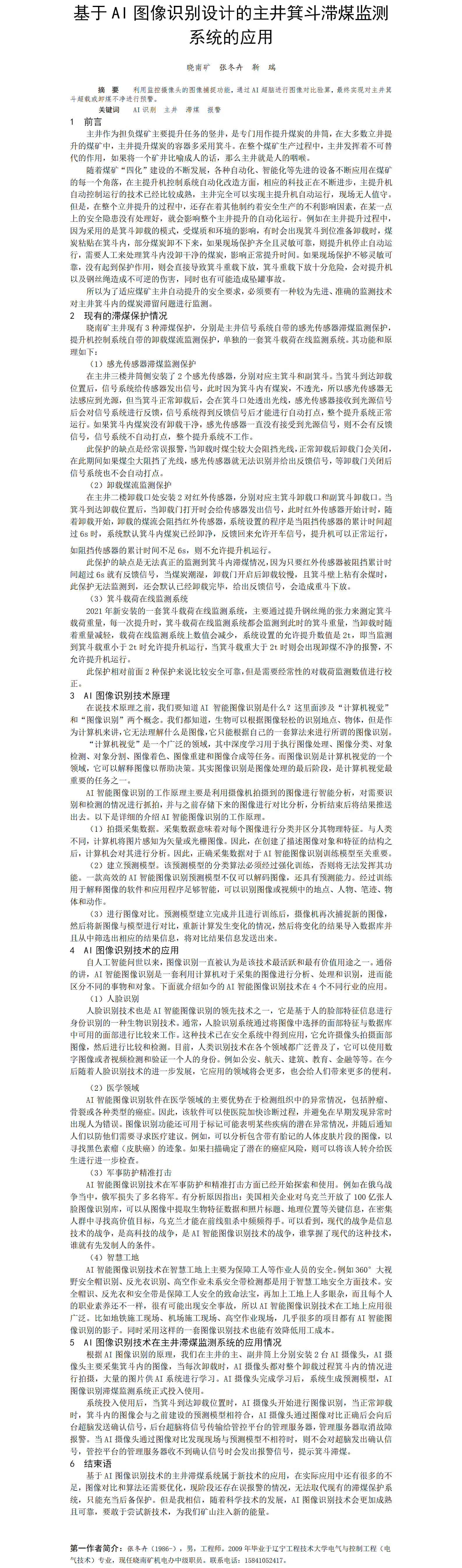 第60屆等級獎(jiǎng)?wù)撐?-基于AI圖像識別設(shè)計(jì)的主井箕斗滯煤監(jiān)測系統(tǒng)的應(yīng)用