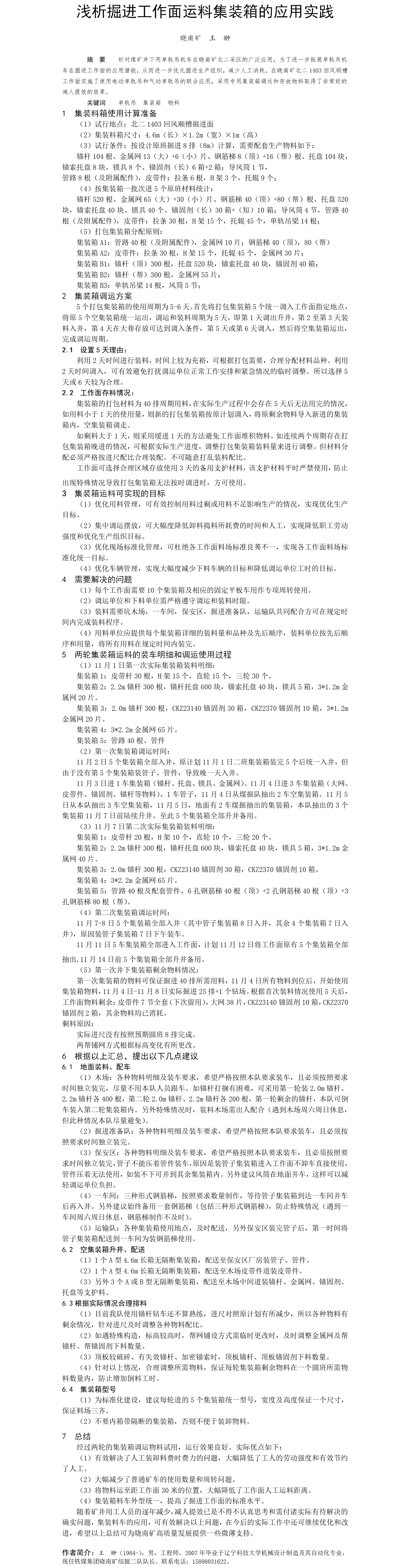 第60屆等級獎論文---淺析掘進工作面運料集裝箱的應用實踐