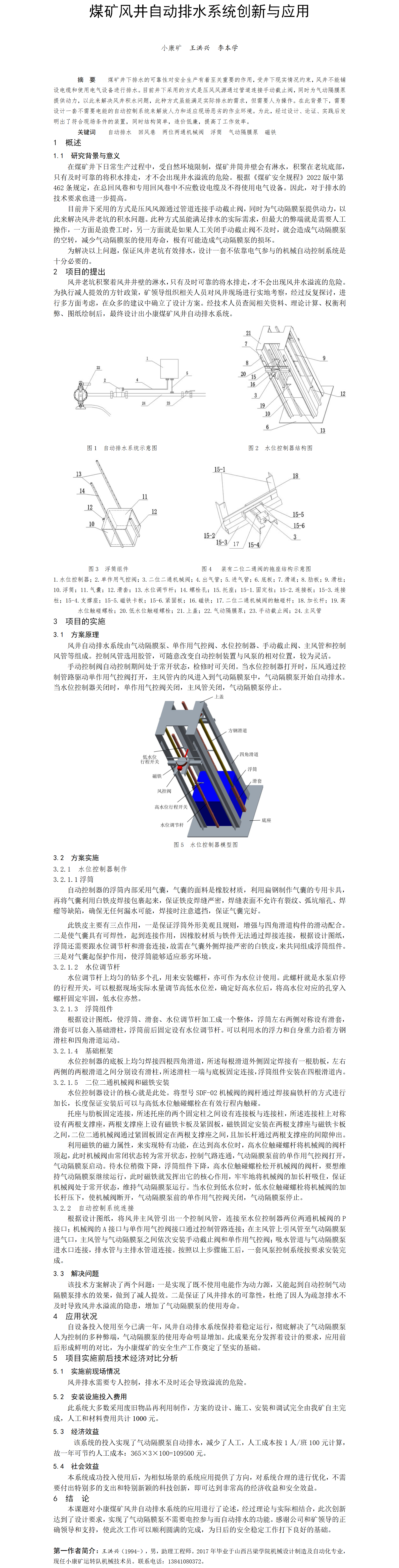 第60屆等級獎(jiǎng)?wù)撐?--煤礦風(fēng)井自動(dòng)排水系統(tǒng)創(chuàng)新與應(yīng)用