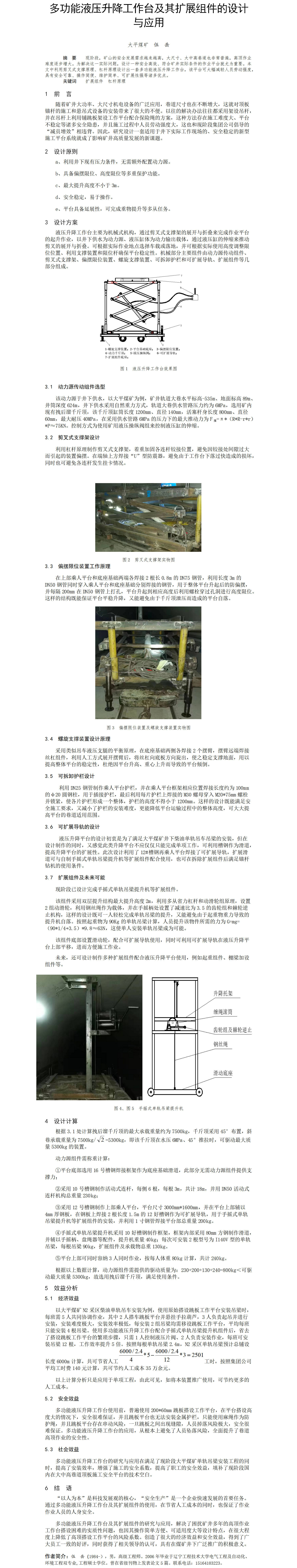 第60屆等級獎?wù)撐?--多功能液壓升降工作臺及其擴展組件的設(shè)計與應(yīng)用