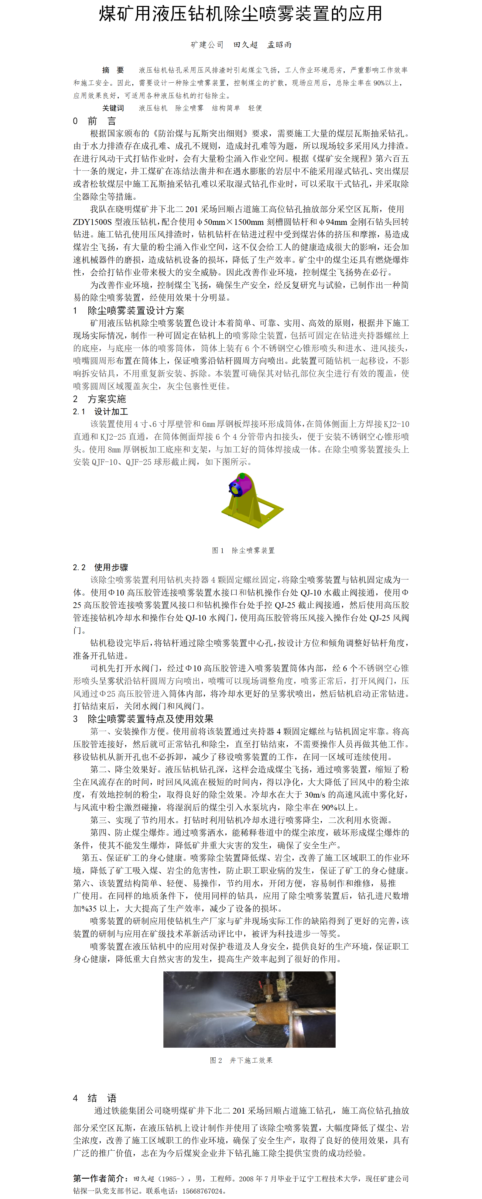 第60屆等級(jí)獎(jiǎng)?wù)撐?--煤礦用液壓鉆機(jī)除塵噴霧裝置的應(yīng)用
