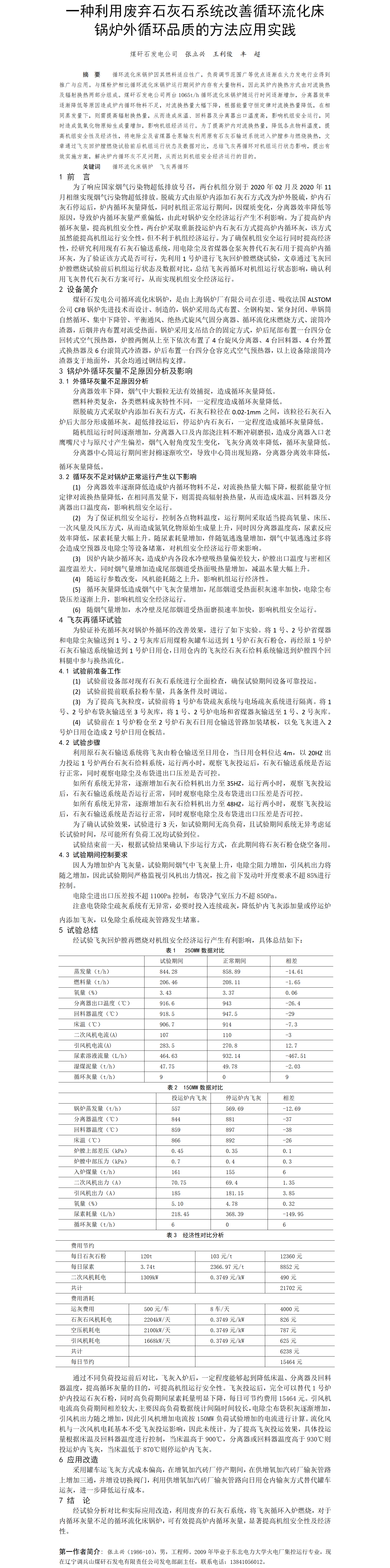 第60屆等級(jí)獎(jiǎng)?wù)撐?--一種利用廢棄石灰石系統(tǒng)改善循環(huán)流化床鍋爐外循環(huán)品質(zhì)的方法實(shí)踐