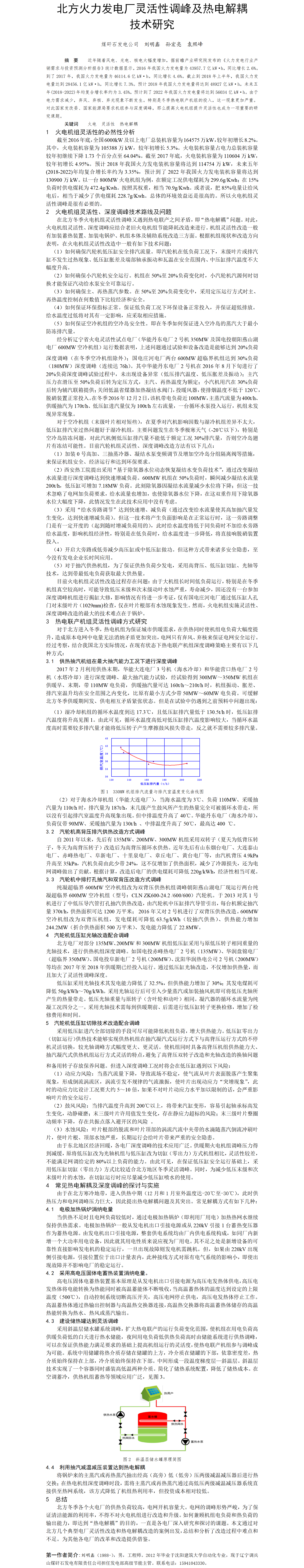 第60屆等級(jí)獎(jiǎng)?wù)撐?--北方火力發(fā)電廠靈活性調(diào)峰及熱電解耦技術(shù)研究