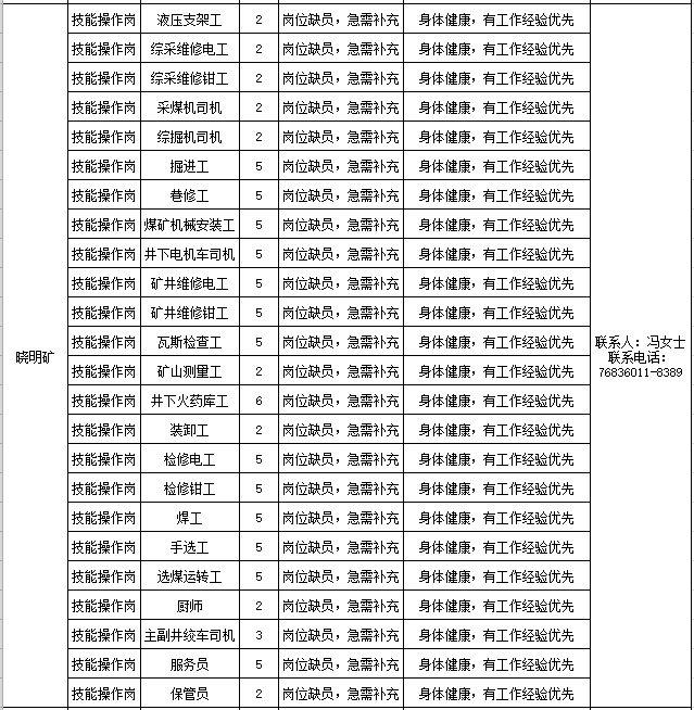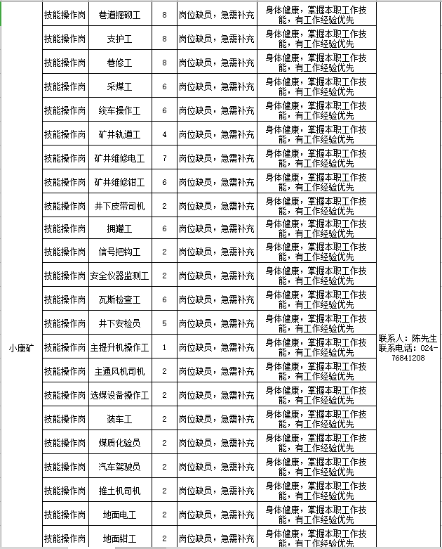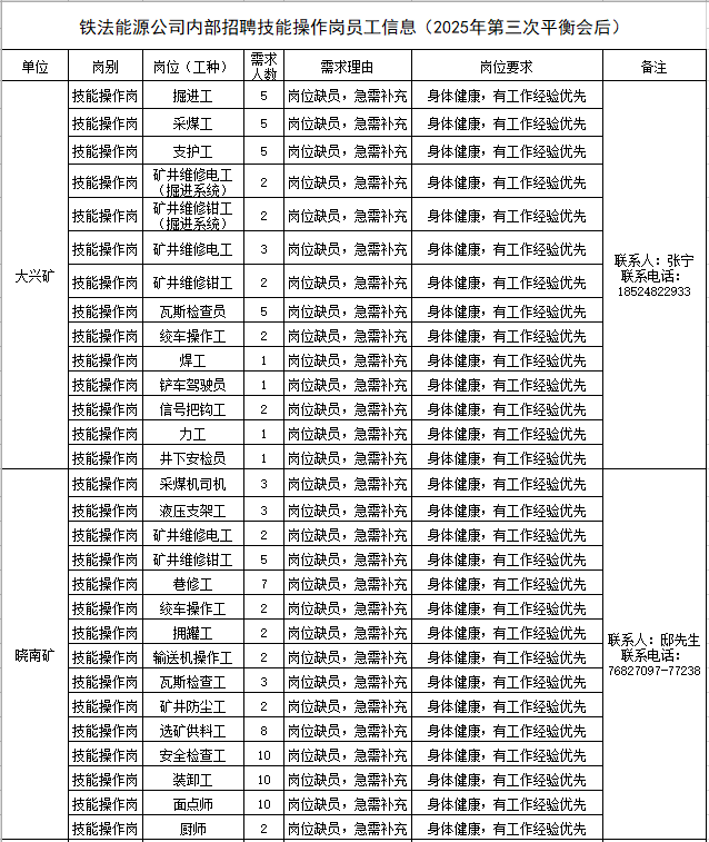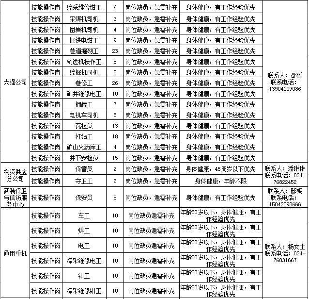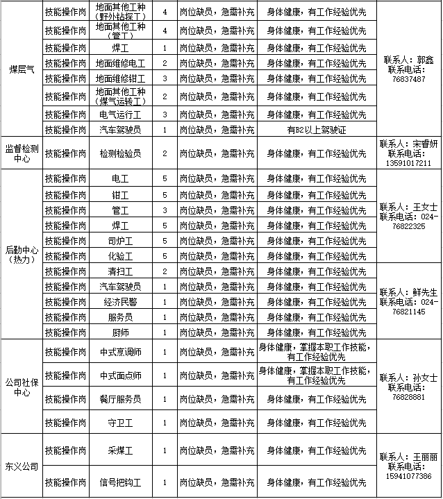 鐵法能源公司內(nèi)部招聘技能操作崗員工信息