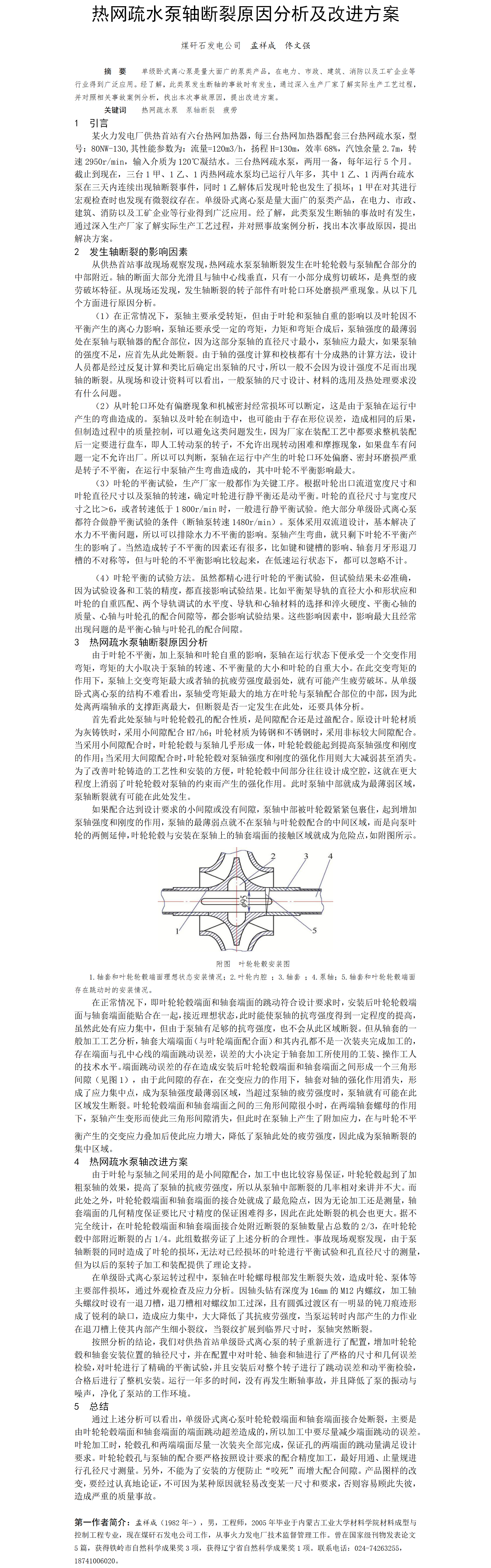 第60屆等級獎?wù)撐?--熱網(wǎng)疏水泵軸斷裂原因分析及改進(jìn)方案
