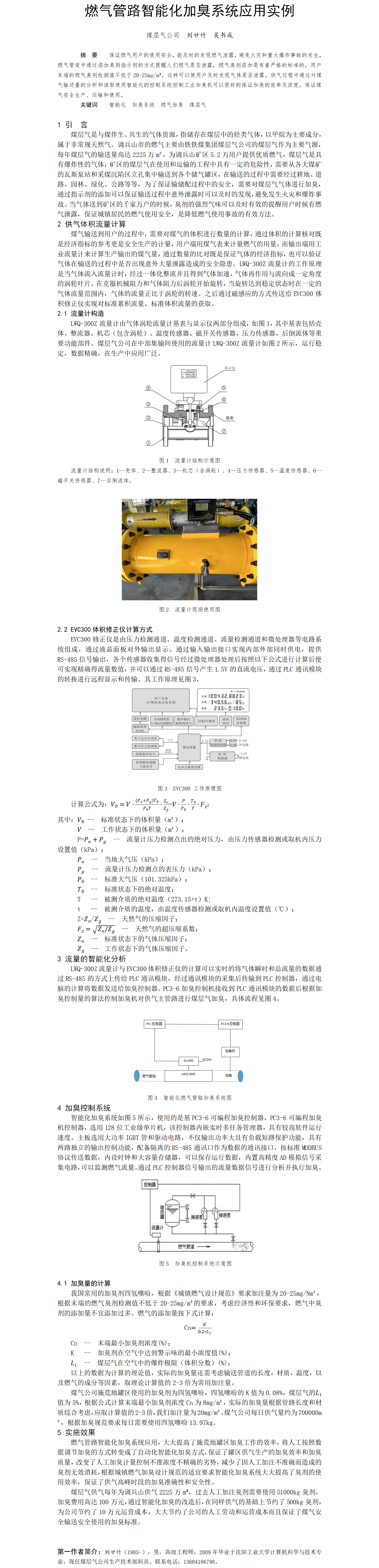 第60屆等級獎?wù)撐?--燃氣管路智能化加臭系統(tǒng)應(yīng)用實例