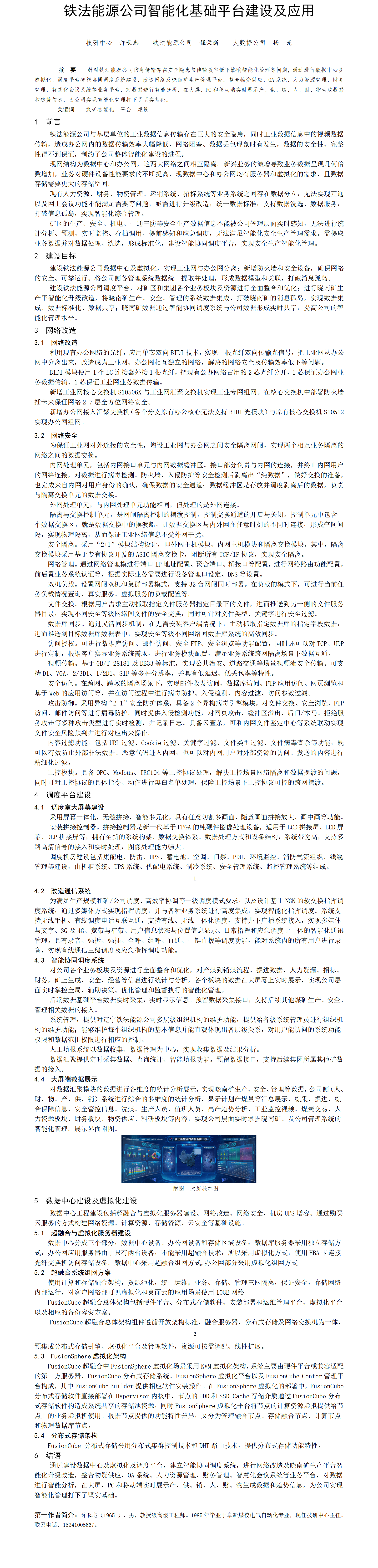 第60屆等級(jí)獎(jiǎng)?wù)撐?--鐵法能源公司智能化基礎(chǔ)平臺(tái)建設(shè)及應(yīng)用
