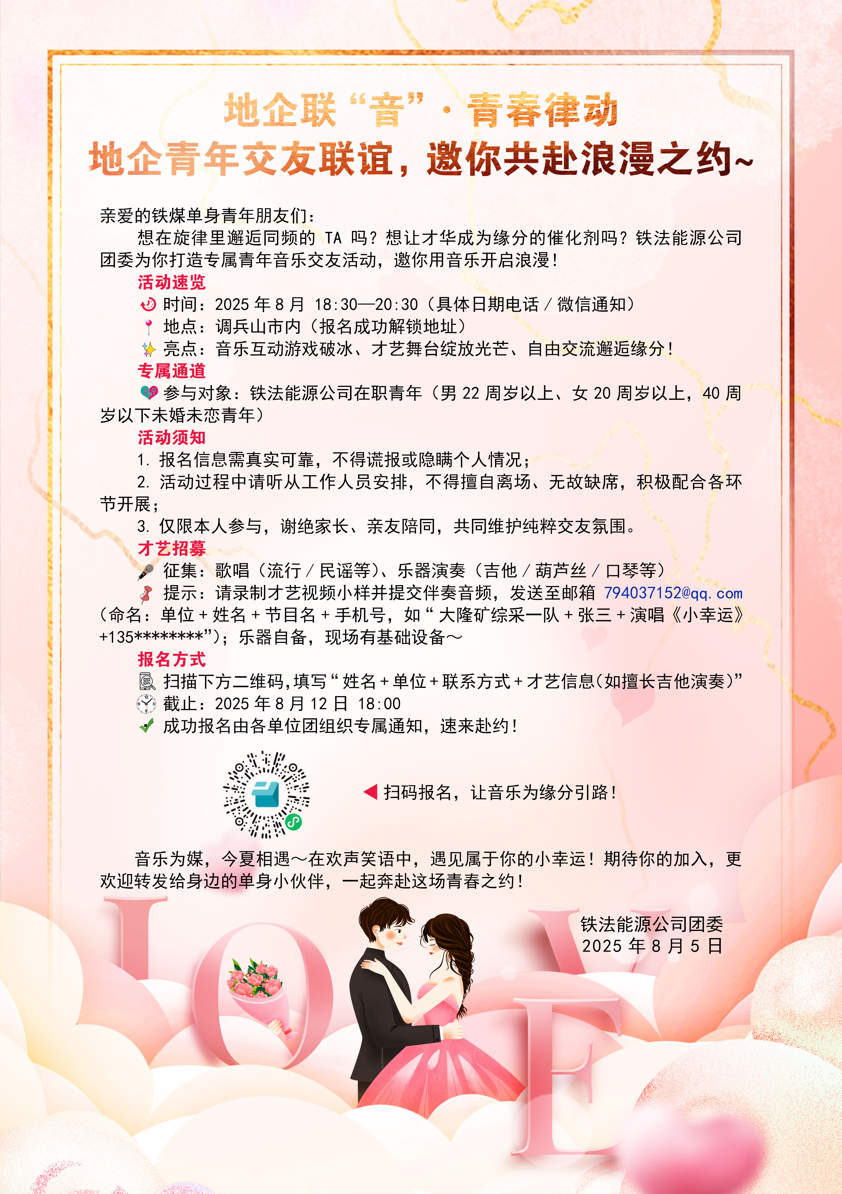 地企聯(lián)“音”·青春律動(dòng)丨青年交友聯(lián)誼,邀你共赴浪漫之約,快來報(bào)名吧!