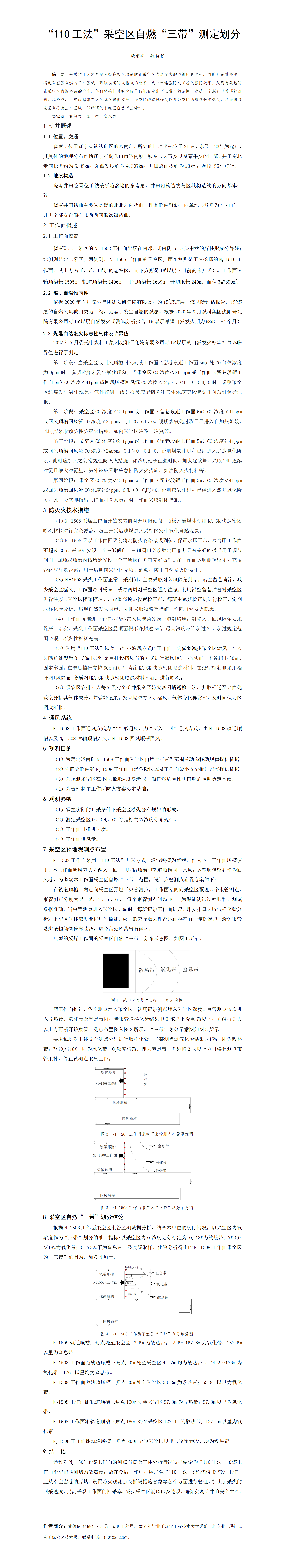 第61屆等級獎?wù)撐?--“110工法”采空區(qū)自燃“三帶”測定劃分