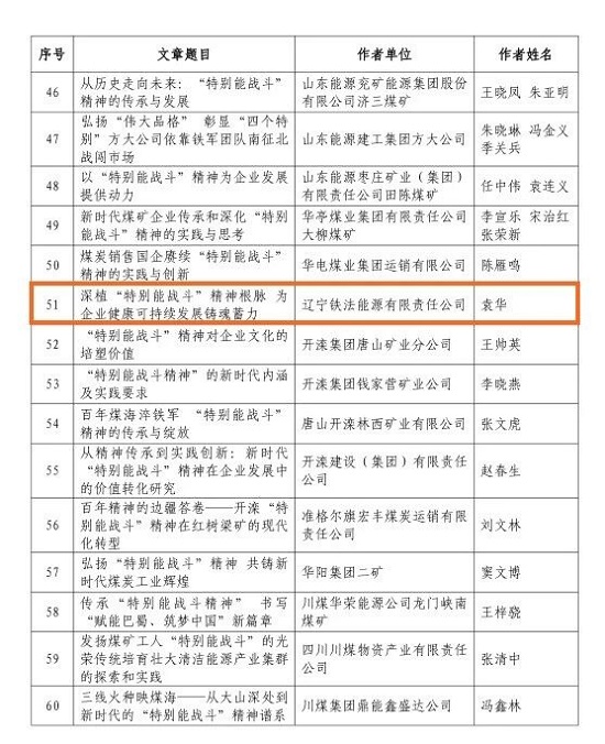 煤炭行業(yè)“特別能戰(zhàn)斗”精神優(yōu)秀論文評(píng)選揭曉 公司報(bào)送論文榜上有名