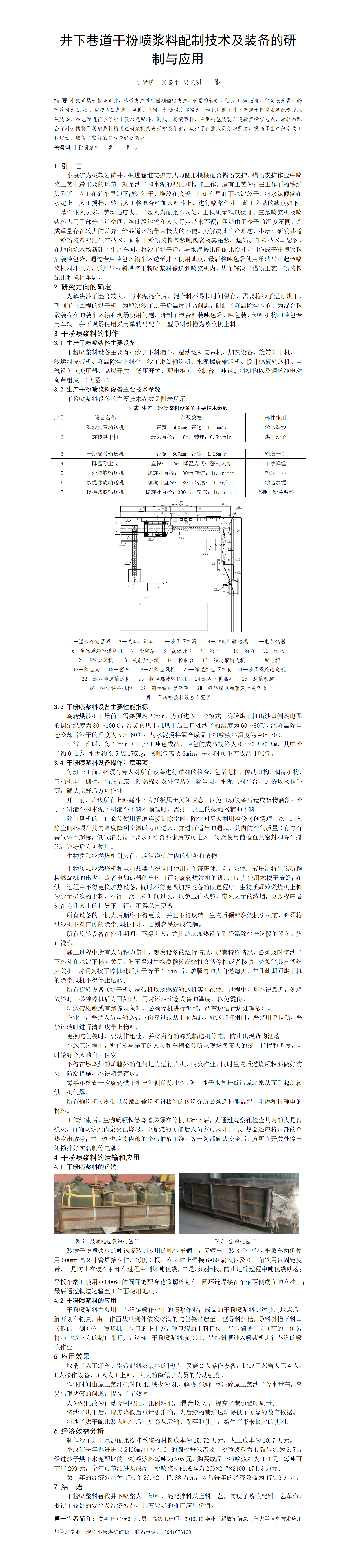 第61屆等級獎?wù)撐?--井下巷道干粉噴漿料配制技術(shù)及裝備的研制與應(yīng)用