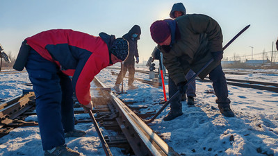 在運輸部大青站場道岔線路改道作業(yè)現(xiàn)場,工務(wù)段職工在破曉前就已到崗,金屬工具握在手里,刺骨的冷意瞬間穿透厚手套,可他們誰也沒有停下動作,對道岔進行精確調(diào)整,校正道岔的幾何尺寸,為列車平穩(wěn)運行提供可靠保障。