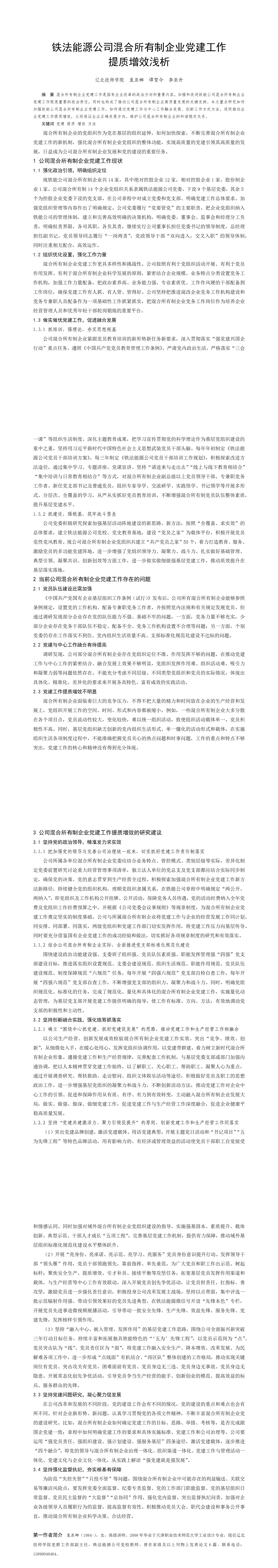 第61屆等級獎?wù)撐?--鐵法能源公司混合所有制企業(yè)黨建工作提質(zhì)增效淺析