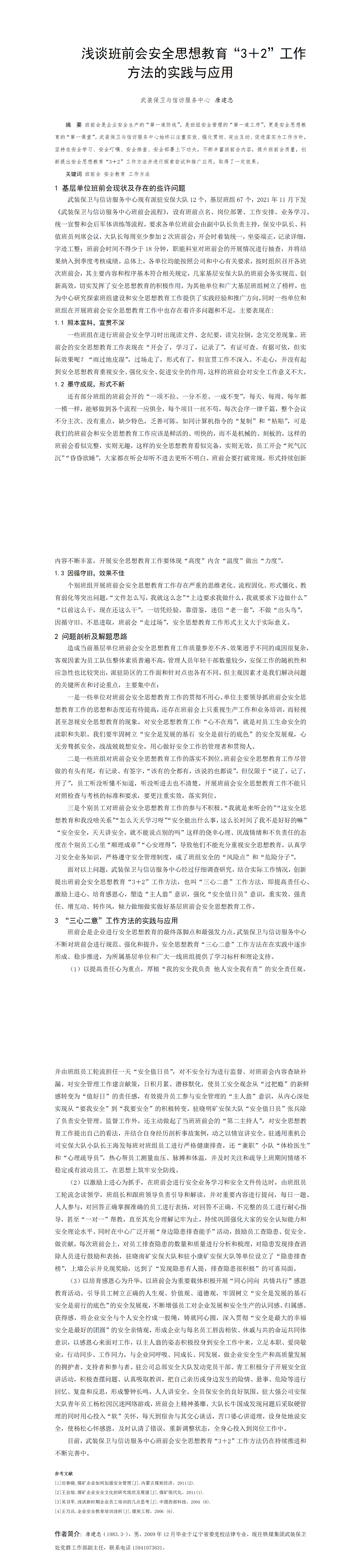 第61屆等級獎(jiǎng)?wù)撐?--淺談班前會安全思想教育“3+2”工作方法的實(shí)踐與應(yīng)用