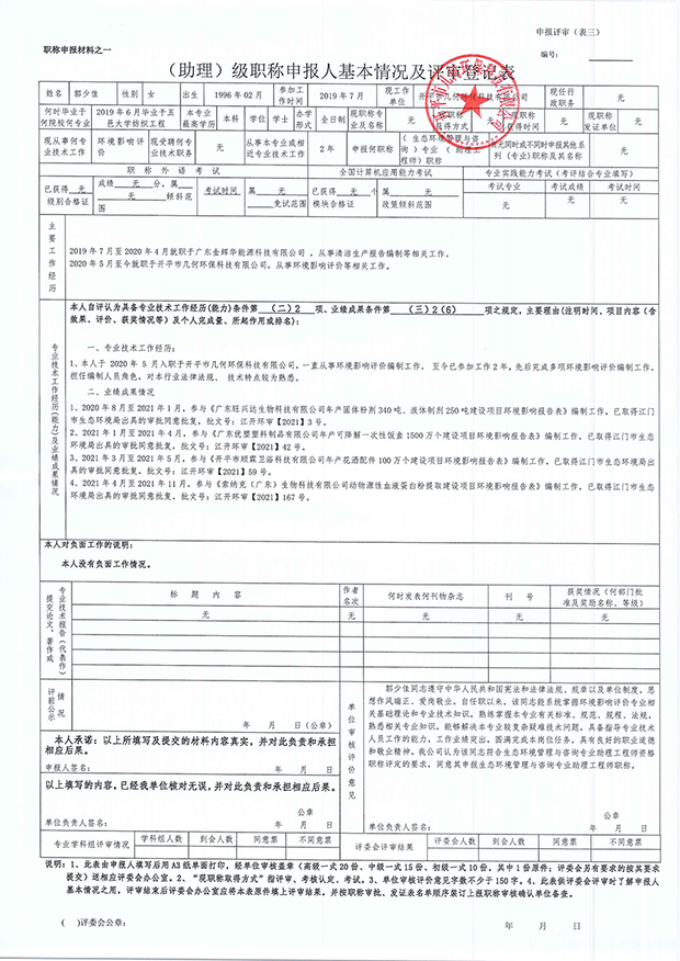 開平市幾何環(huán)??萍加邢薰炯夹g(shù)人員申報(bào)職稱評前公示
