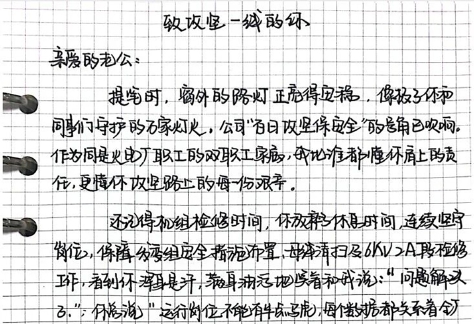 活動(dòng)啟動(dòng)以來,得到了廣大職工家屬的積極響應(yīng)和熱情參與,累計(jì)收到各類家書作品五百余篇。其中既有父母對(duì)子女“平安是?!钡囊笄袊谕校灿衅拮訉?duì)丈夫“規(guī)范操作”的反復(fù)叮囑,還有子女對(duì)父母“爭(zhēng)當(dāng)安全標(biāo)兵”的純真鼓勵(lì)。不少家書還精心搭配了全家福照片、手繪安全漫畫、暖心安全小視頻,使家書形式鮮活立體,情感表達(dá)更加濃厚,深刻詮釋了“安全是家庭幸?;钡暮诵膬?nèi)涵。