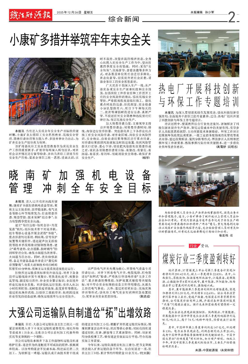 本報(bào)訊 當(dāng)前進(jìn)入實(shí)現(xiàn)全年安全生產(chǎn)目標(biāo)的關(guān)鍵時(shí)期,小康礦從加強(qiáng)職工安全思想教育、現(xiàn)場安全管理、隱患排查治理等方面入手,多措并舉全力出擊,為礦井安全生產(chǎn)提供有力保障。