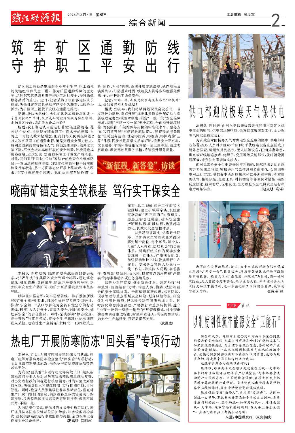 楊成:我們客運隊目前運行著32條通勤線路,覆蓋65個站點,雖然現(xiàn)在隨著職工生活水平的提高,自駕上下班的人數(shù)大幅增加,但我們每天仍要保障近2萬人次礦區(qū)職工的通勤出行,道路交通安全壓力較大。特別是遇到雨雪等極端天氣,路面濕滑結冰,能見度大幅下降,不僅會增加車輛行駛的安全風險,還極易造成線路擁堵、班次延誤,給通勤保障工作帶來嚴峻考驗。對此,我們采用“科技+傳統(tǒng)”雙結合的檢查辦法筑牢防線:一方面通過視頻監(jiān)控、GPS定位等高科技手段實時監(jiān)控行車狀態(tài);另一方面常態(tài)化開展上路檢查、專人跟乘,全方位規(guī)避安全隱患。我們還落實車輛檢修“日檢、周檢、月檢”機制,系統(tǒng)開展交通法規(guī)、操作規(guī)程及實操培訓,盯防重點時段、線路及人員等多維度強化保障,全力守護職工通勤安全。