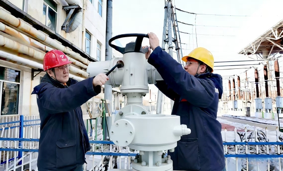 在煤矸石發(fā)電公司供熱保電一線,兩位職工正操作著熱網(wǎng)循環(huán)水閥門(mén)。他們的臉頰在寒風(fēng)中凍得通紅,厚重的棉衣?lián)醪蛔〈坦堑暮?,但手上的?dòng)作依舊沉穩(wěn)有力。他們精準(zhǔn)調(diào)試,默契配合,守護(hù)著礦區(qū)溫暖與光明的“生命線”。