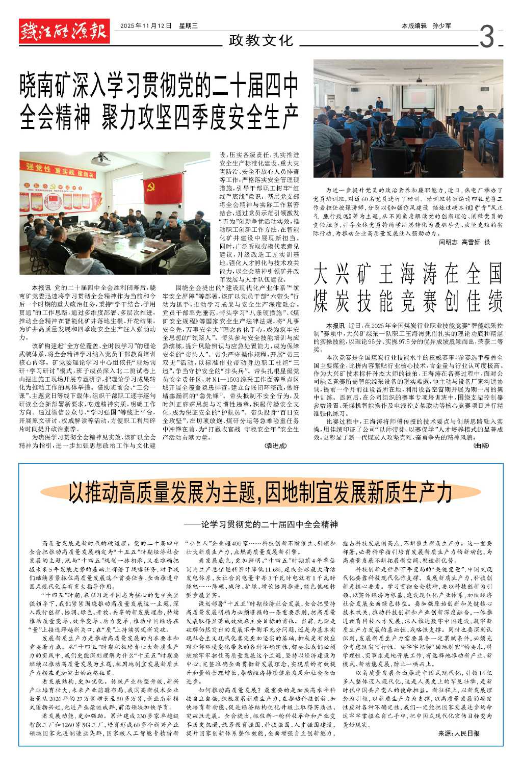 大興礦王海濤在全國煤炭技能競賽創(chuàng)佳績