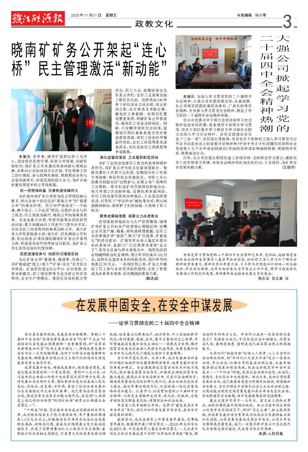 曉南礦礦務公開架起“連心橋” 民主管…