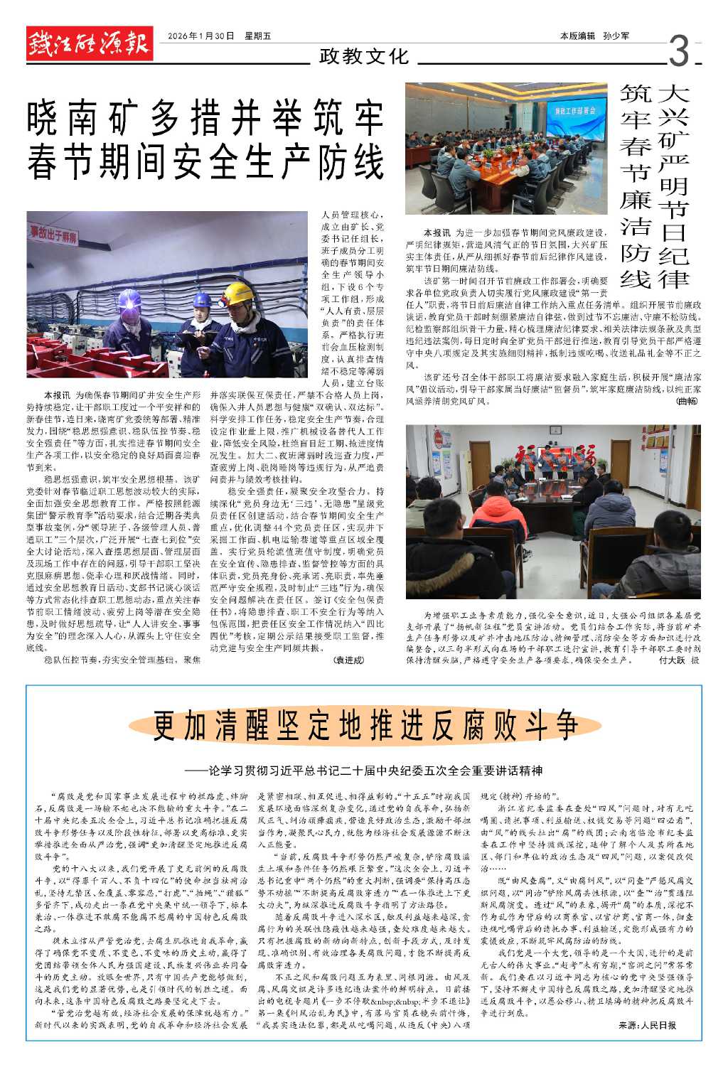 大興礦嚴明節(jié)日紀律 筑牢春節(jié)廉潔防線