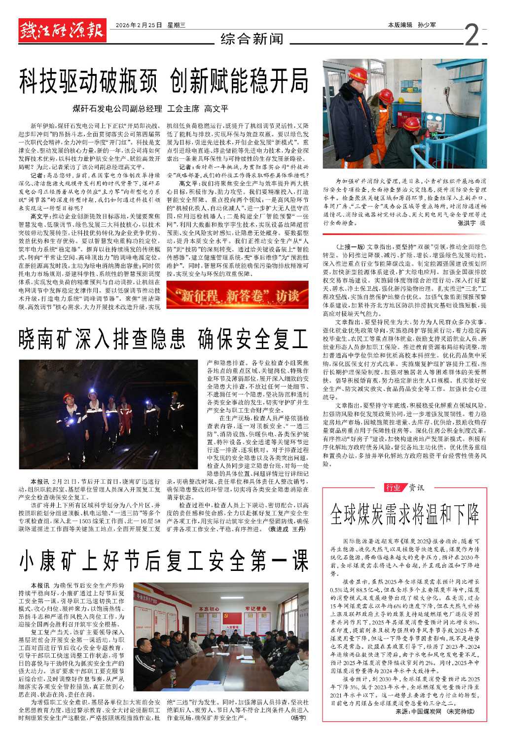 曉南礦深入排查隱患 確保安全復(fù)工